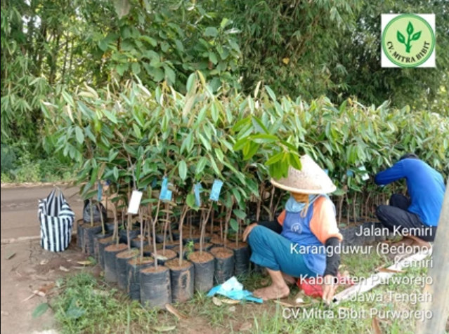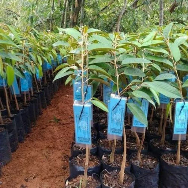 Bibit durian yang dibudidayakan secara profesional dengan perawatan standar hortikultura, cocok untuk penanaman di rumah maupun kebun.